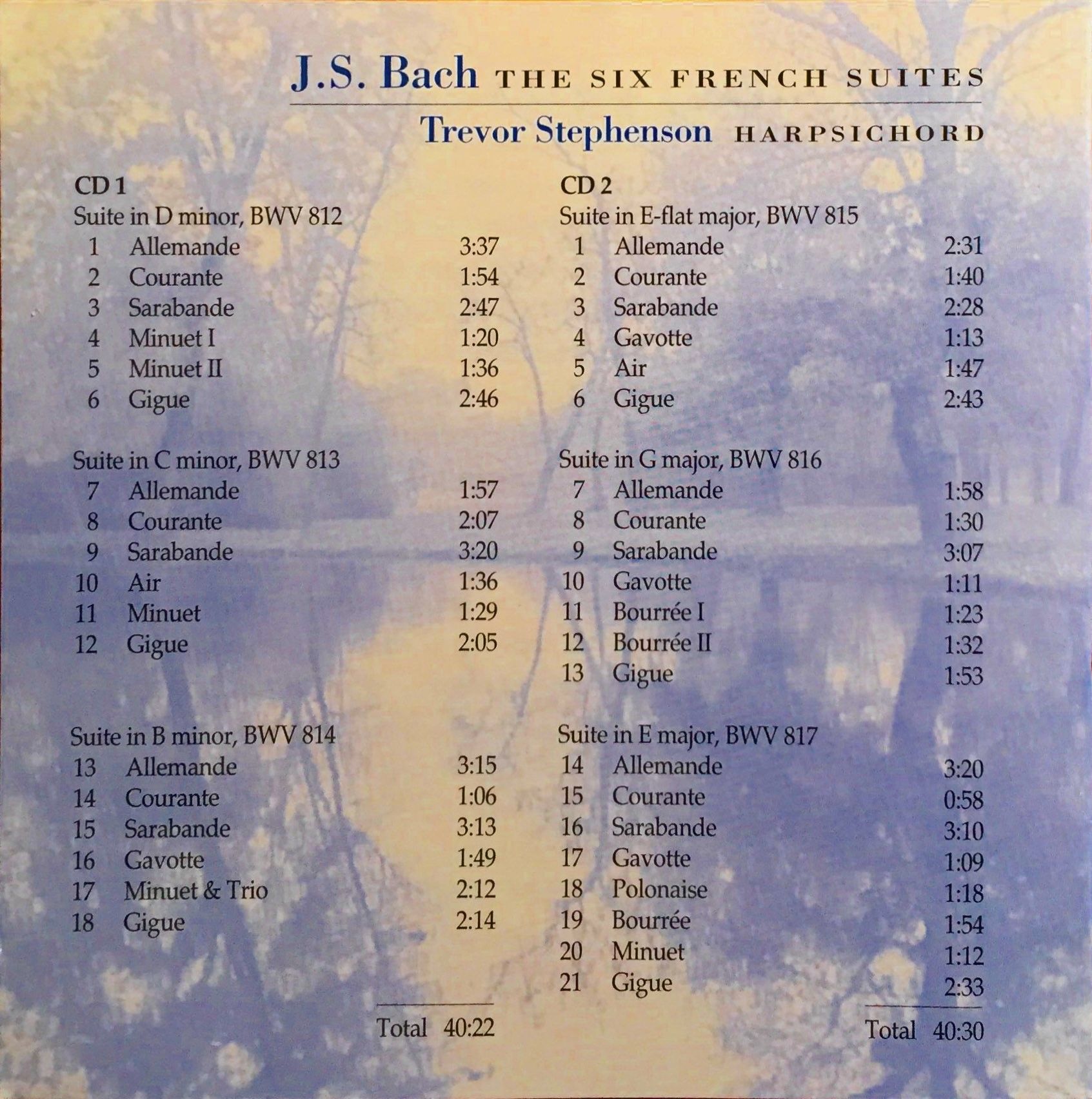 In the midst of all this, Bach continued to write large and small scale works on the side! In 1722, as he completed the first book of The Well-Tempered Clavier, drafts for several new dance suites appeared in the notebook (Clavierbüchlein) that he presented as a gift to his new wife, Anna Magdalena. Bach continued to rework and expand the dance sets over the next three years, and by 1725 six complete suites (known today as the “French Suites”) had crystallized into a nearly final form. Like most of Bach’s music, these suites were never published. Instead, he used them regularly as a teaching aid for students who had completed study of the Inventions but were not yet ready for The Well-Tempered Clavier.